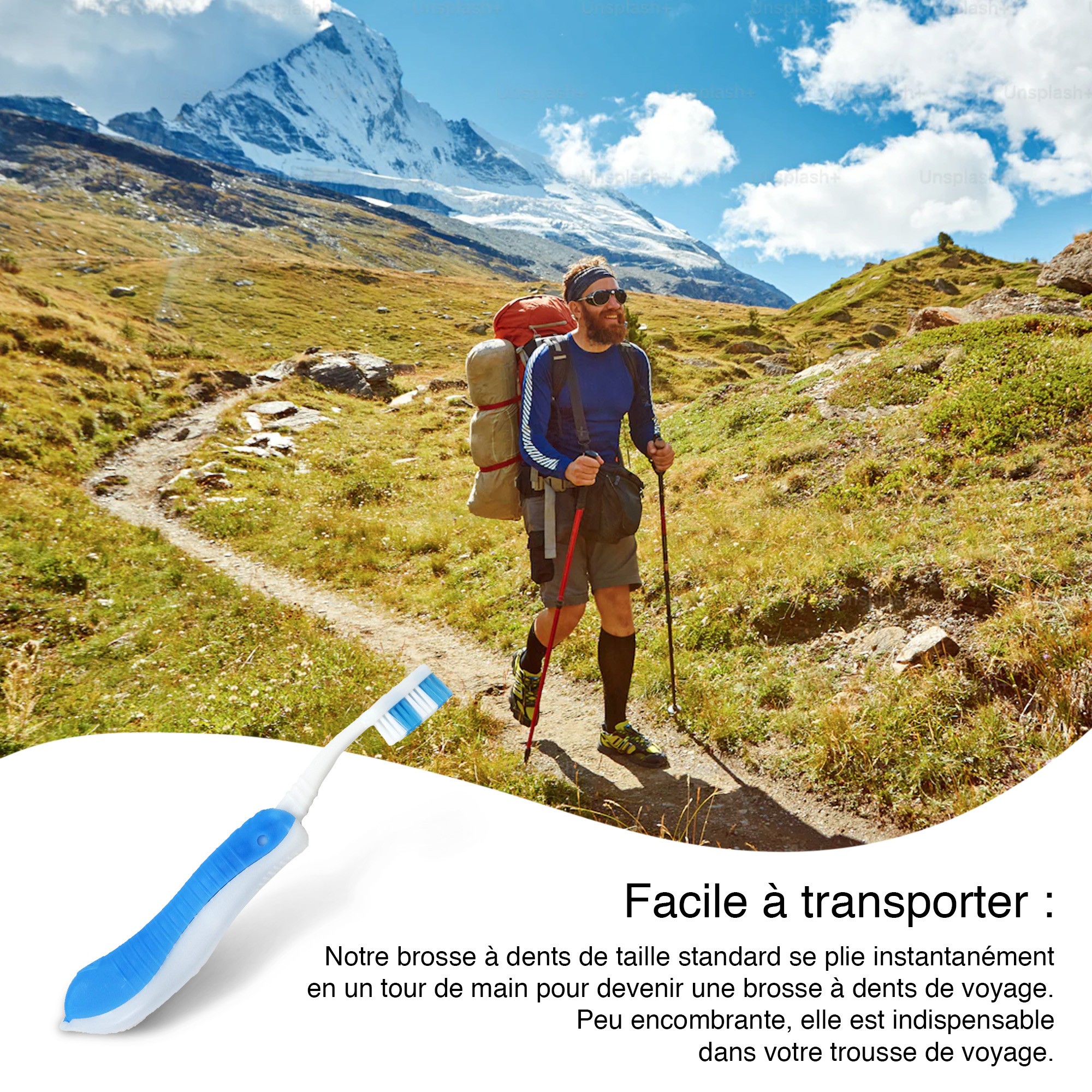 Nos brosses à dents de voyages sont pliables, d’un format compact permettant de les transporter et de les ranger facilement dans une poche, un sac, un tiroir... quel que soit l’endroit , au bureau comme en voyage, au camping etc