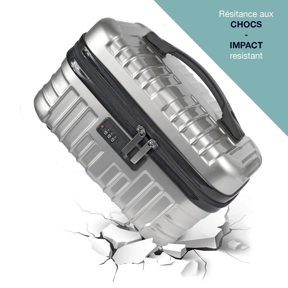 Vanity case avec coque moulée 3D en ABS + Polycarbonate, pour garantir un aspect brillant et une résistance renforcée aux chocs.