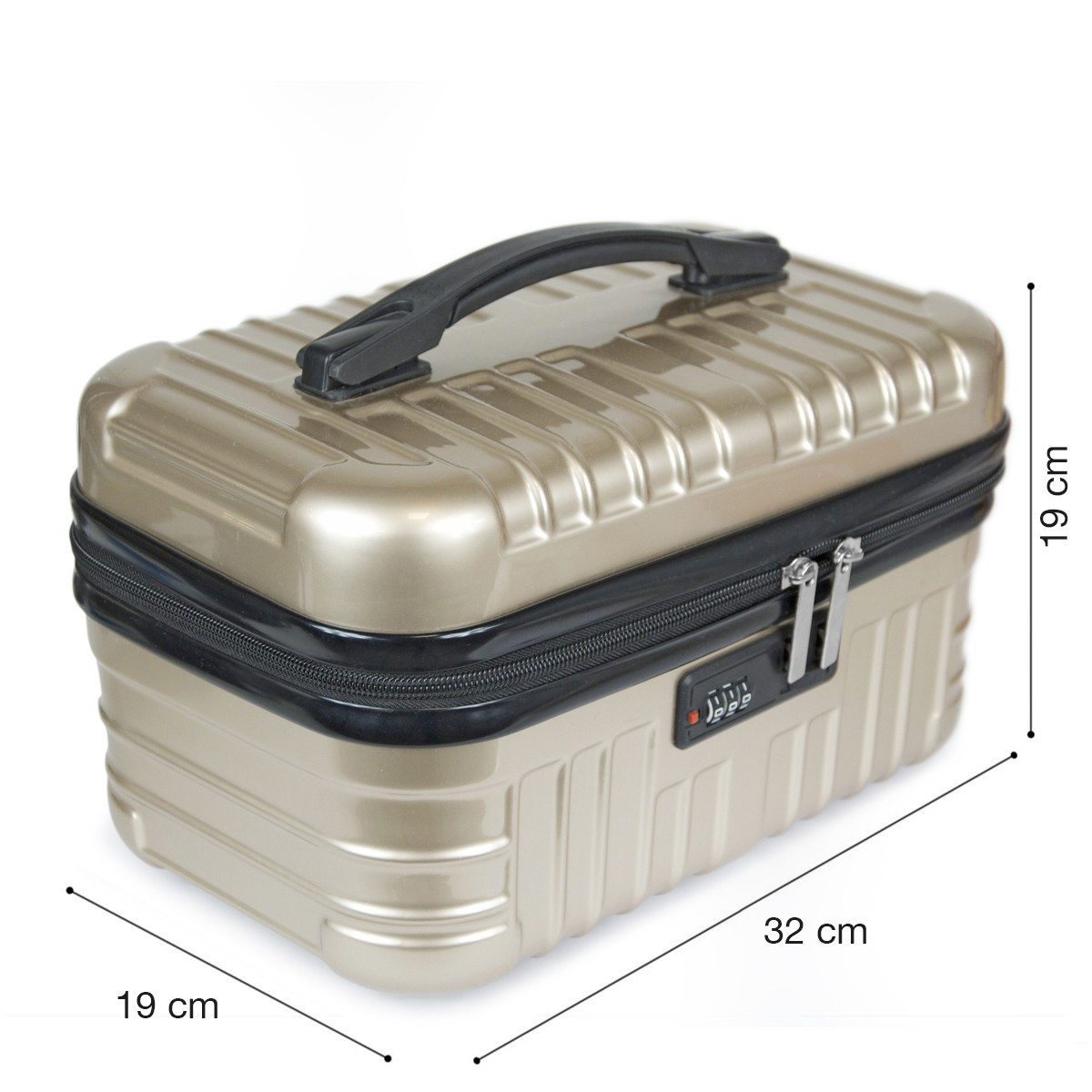 Vanity case avec coque moulée 3D en ABS + Polycarbonate, pour garantir un aspect brillant et une résistance renforcée aux chocs.