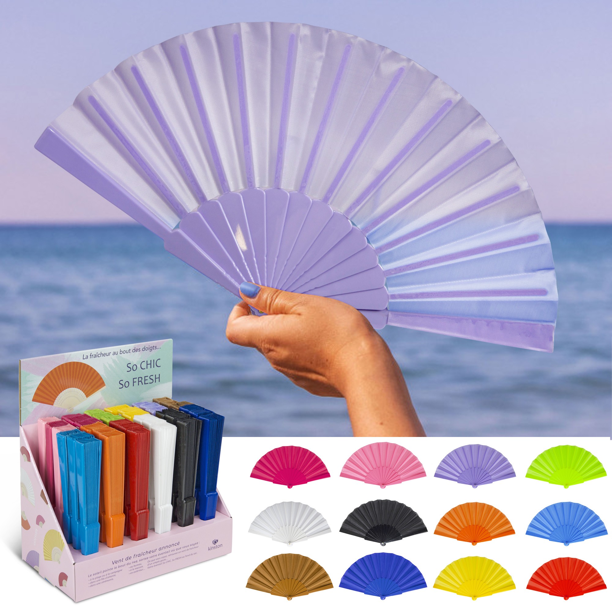Présentoir de comptoir de 36 éventails « So CHIC, So FRESH » 12 couleurs assorties.
