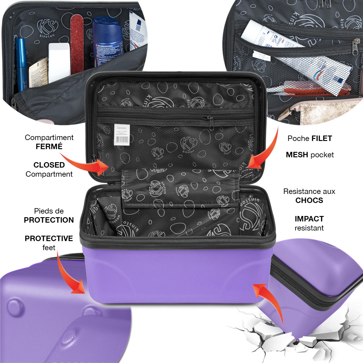 Le vanity est entièrement doublé, avec une tenue renforcée ""anti-chocs"", assurée par l'ABS.