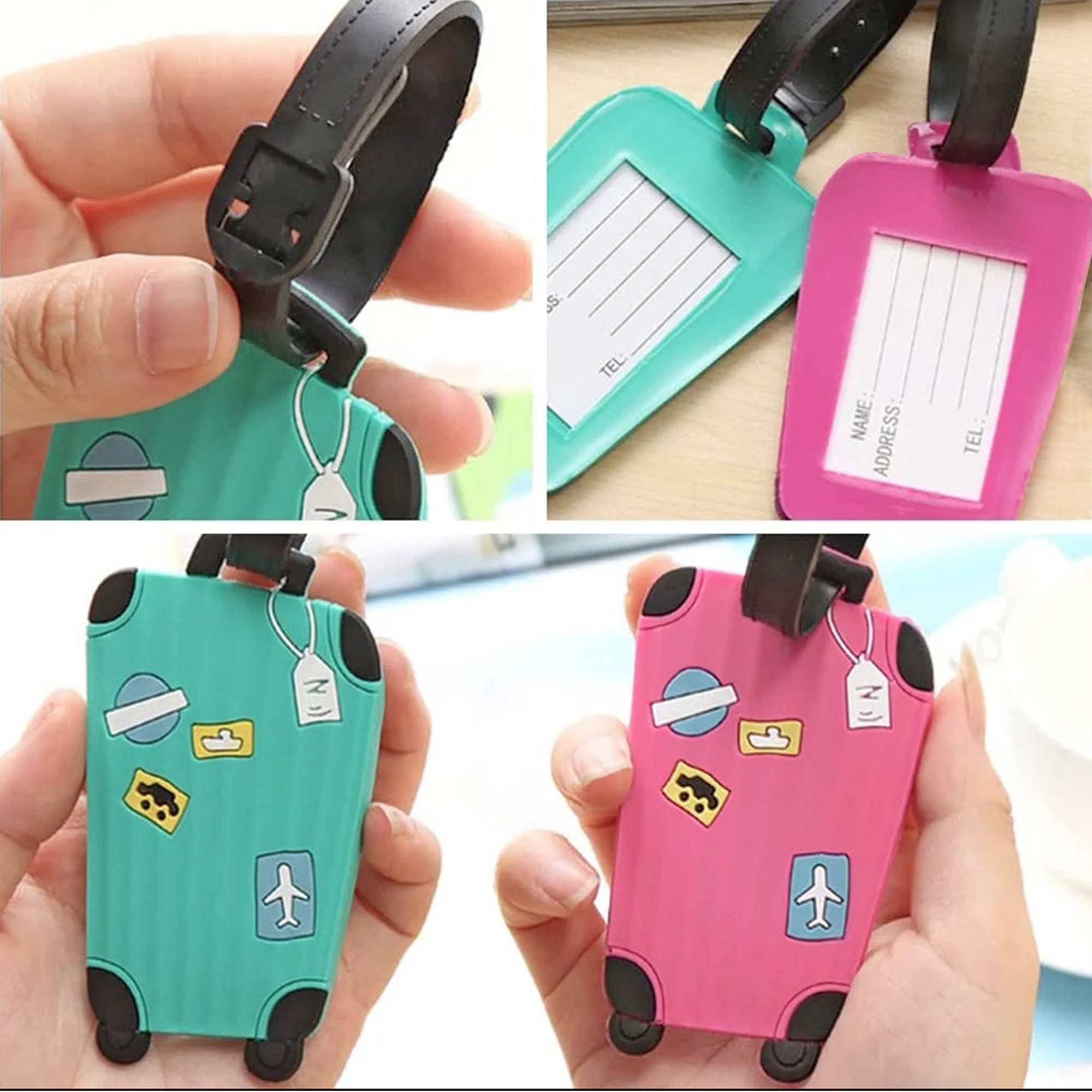 - Les différentes couleurs des porte-étiquettes permettent de repérer immédiatement votre bagage, le tout de façon ludique.
