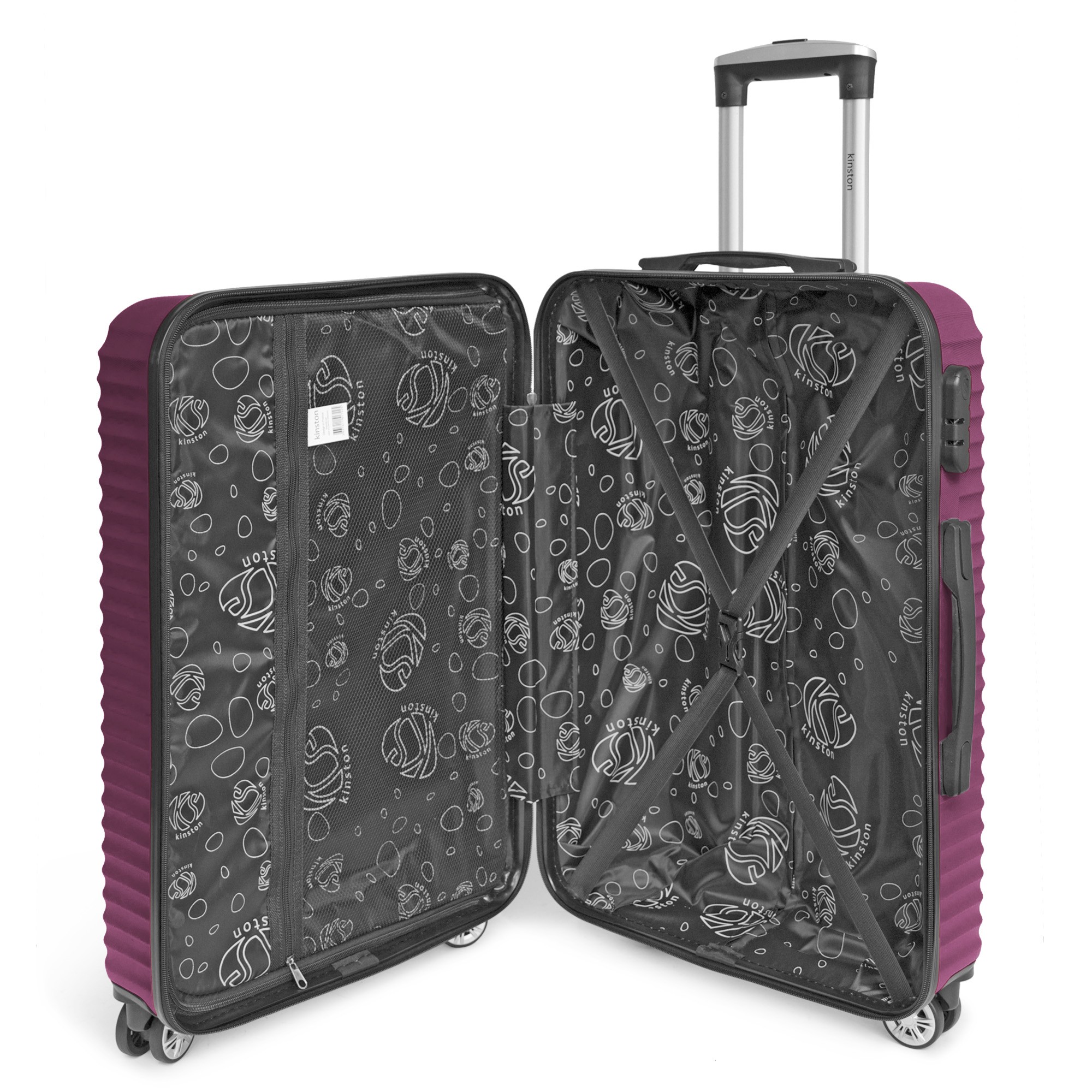 Set de 3 valises rigides avec coque ABS 3D, 4 roues multidirectionnelles, 2 poignées de portage moussées. A l'intérieur, double espace de rangement avec séparateur et sangles de maintien. Grande poche zippée en maille filet.