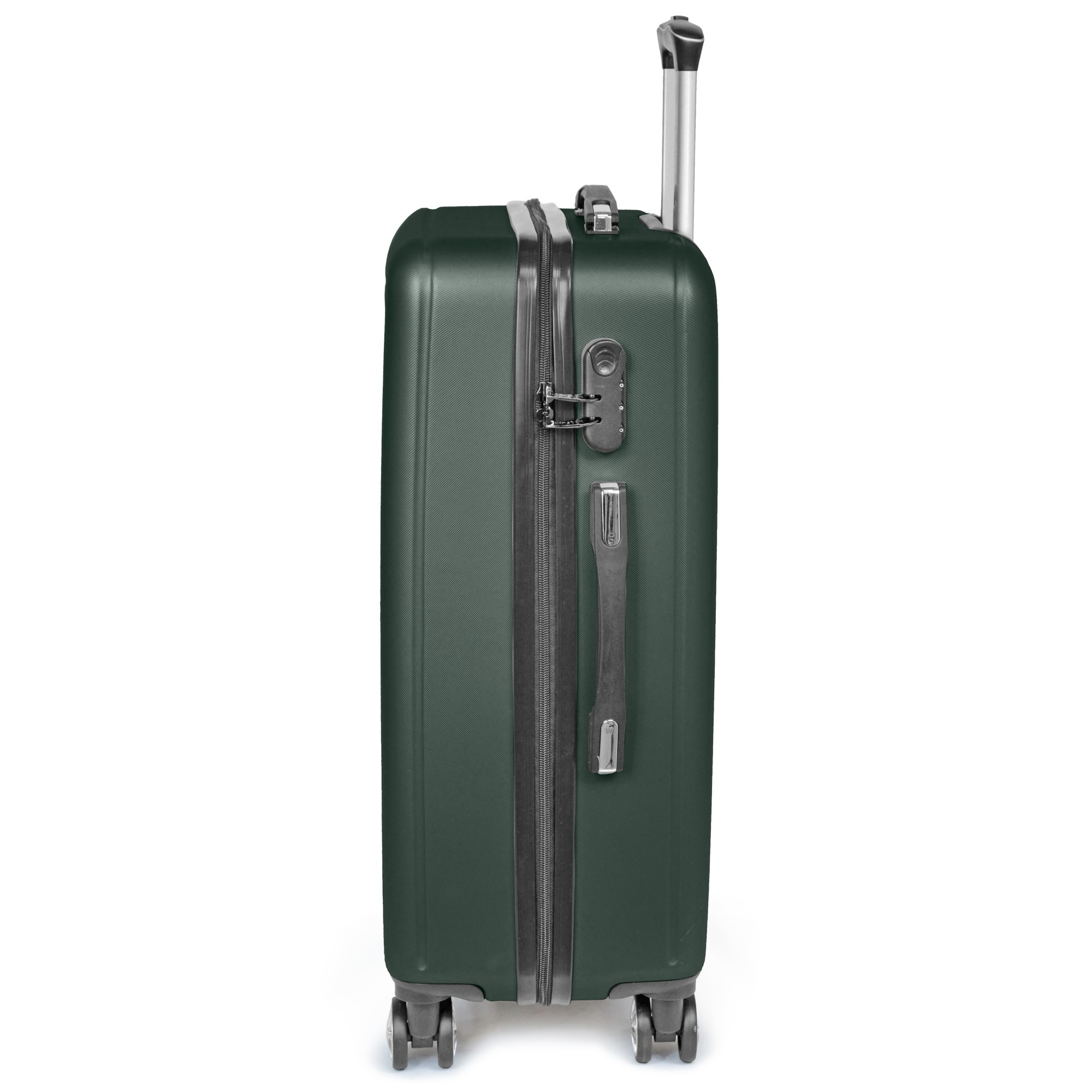 Set de 3 valises rigides avec coque ABS 3D vert anglais, 4 roues multidirectionnelles, 2 poignées de portage moussées. Valise cabine aux dimensions compagnies low cost.
