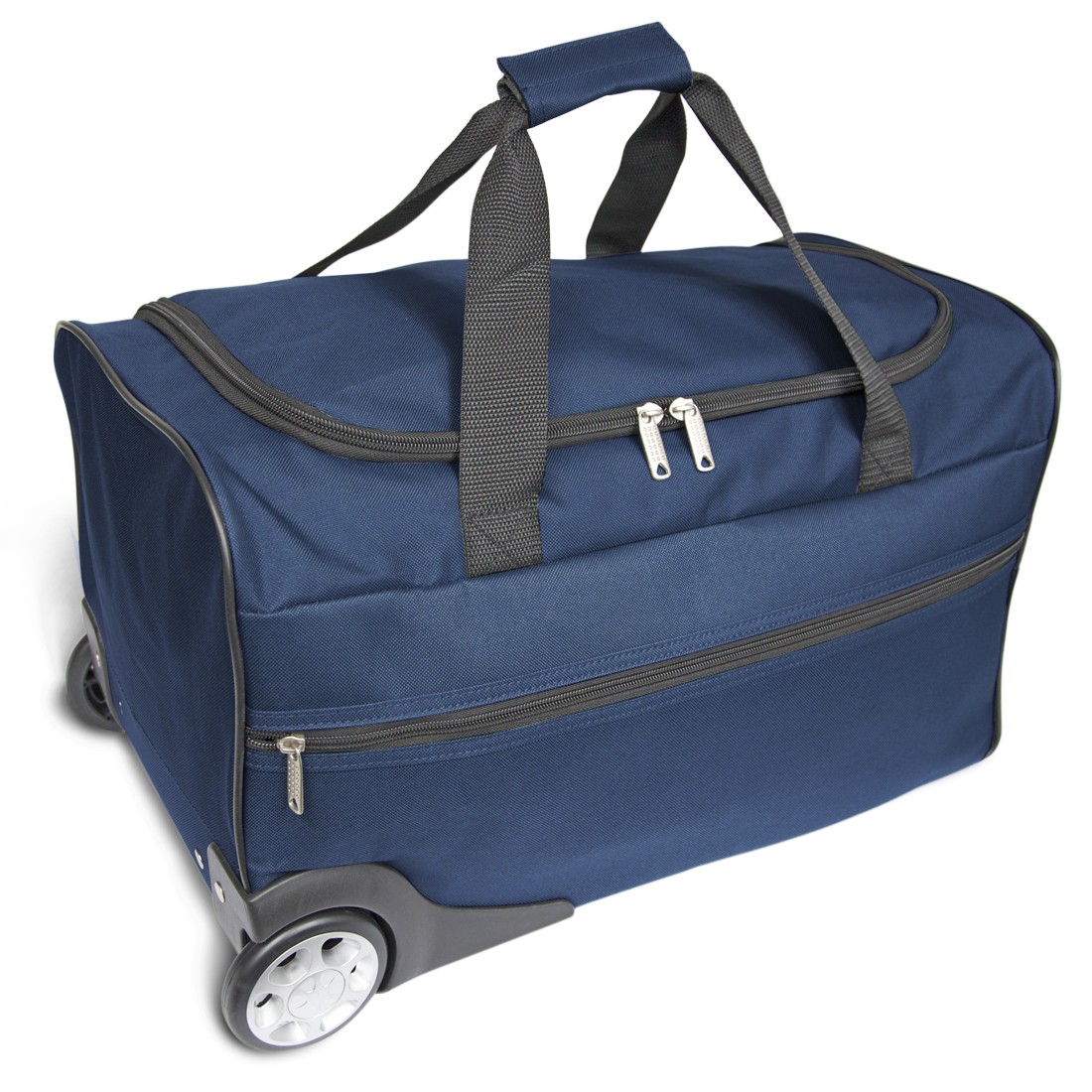 Sac de voyage trolley en textile (polyester). Equipé de 2 roues, vous pouvez laisser le sac glisser derrière vous grâce à sa canne télescopique. Si vous avez des escaliers à gravir ou à descendre, il vous suffit de replier la canne télescopique dans son compartiment zippé et de saisir les deux autres poignées de transport pour porter le sac à la manière d'un bagage à main classique. Outre son vaste compartiment principal, le sac est équipé d’une poche latérale zippée, dans laquelle vous pouvez glisser les objets que vous souhaitez garder à portée de main. Une fois votre voyage terminé, pliez le bagage pour le ranger de manière peu encombrante, par exemple sous un lit.