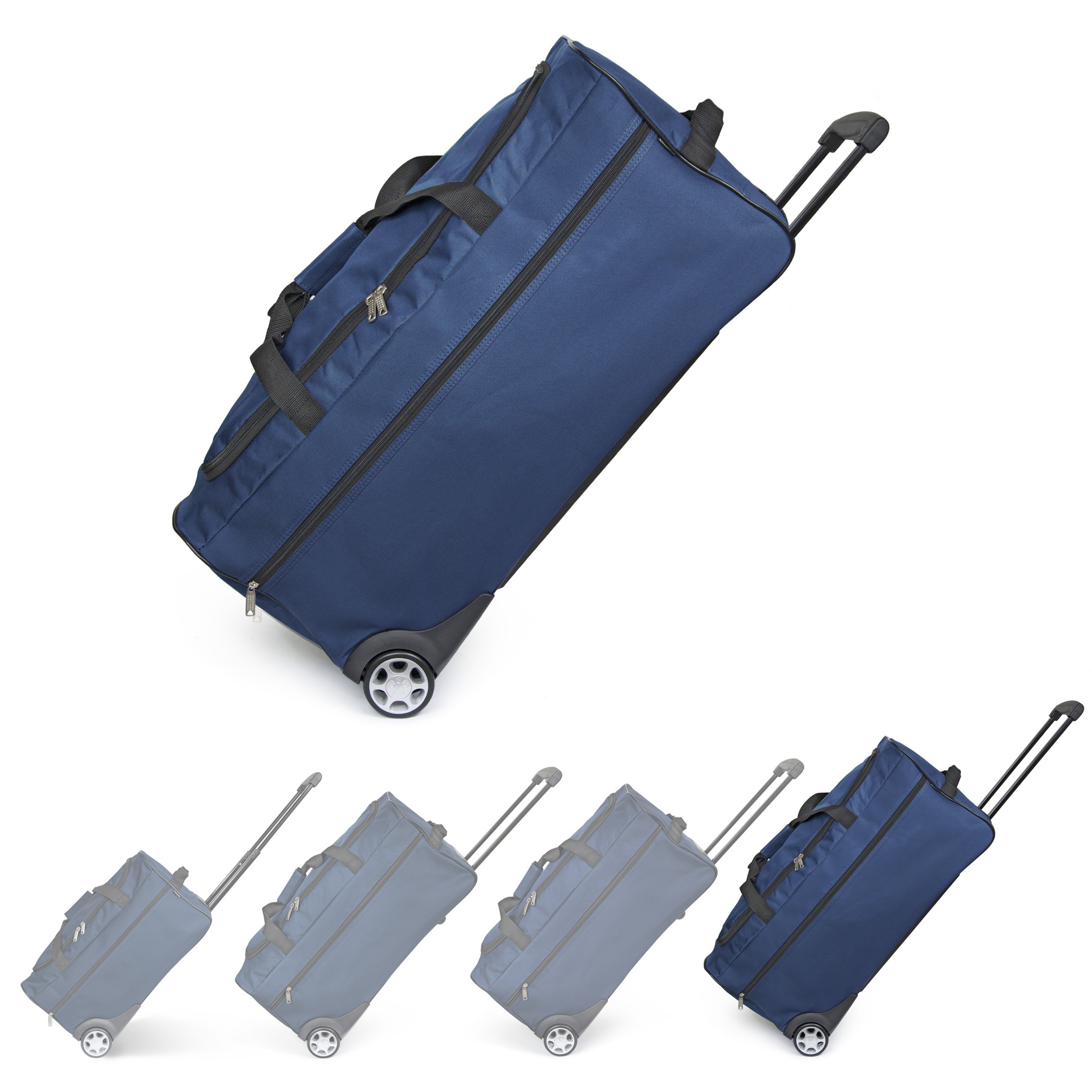 Sac de voyage trolley en textile (polyester) noir. Equipé de 2 roues, vous pouvez laisser le sac glisser derrière vous grâce à sa canne télescopique. Si vous avez des escaliers à gravir ou à descendre, il vous suffit de replier la canne télescopique dans son compartiment zippé et de saisir les deux autres poignées de transport pour porter le sac à la manière d'un bagage à main classique. Outre son vaste compartiment principal, le sac est équipé d’une poche latérale zippée, dans laquelle vous pouvez glisser les objets que vous souhaitez garder à portée de main. Une fois votre voyage terminé, pliez le bagage pour le ranger de manière peu encombrante, par exemple sous un lit. • Bagage à main et trolley 2 en 1 • Grand compartiment principal avec fermeture à glissière sur 3 côtés • 1 poche extérieure avec fermeture à glissière • Canne télescopique rétractable • 2 poignées de transport avec empiècement fermé par scratch • Poignée côté pour plus de confort • Fond du sac rigide ultra résistant et entièrement doublé. • Pieds de protection contre les salissures et l'abrasion lorsqu'il sera posé à même le sol.