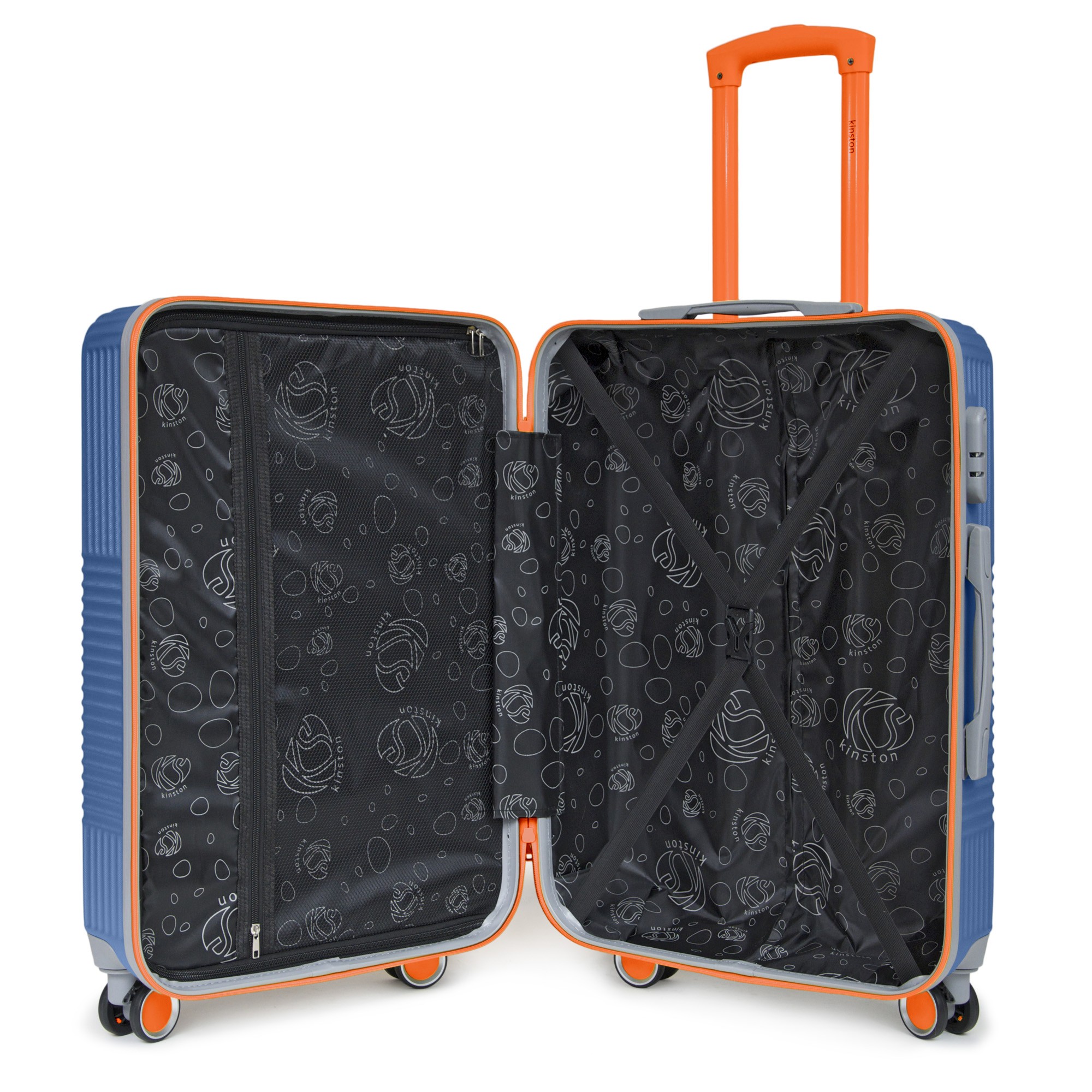 Légères et pratiques ces valises sont conçues en ABS 3D bleu avec accessoires contrastés orange, elles disposent de 4 roues multidirectionnelles à 360° pour un excellent confort de déplacement.