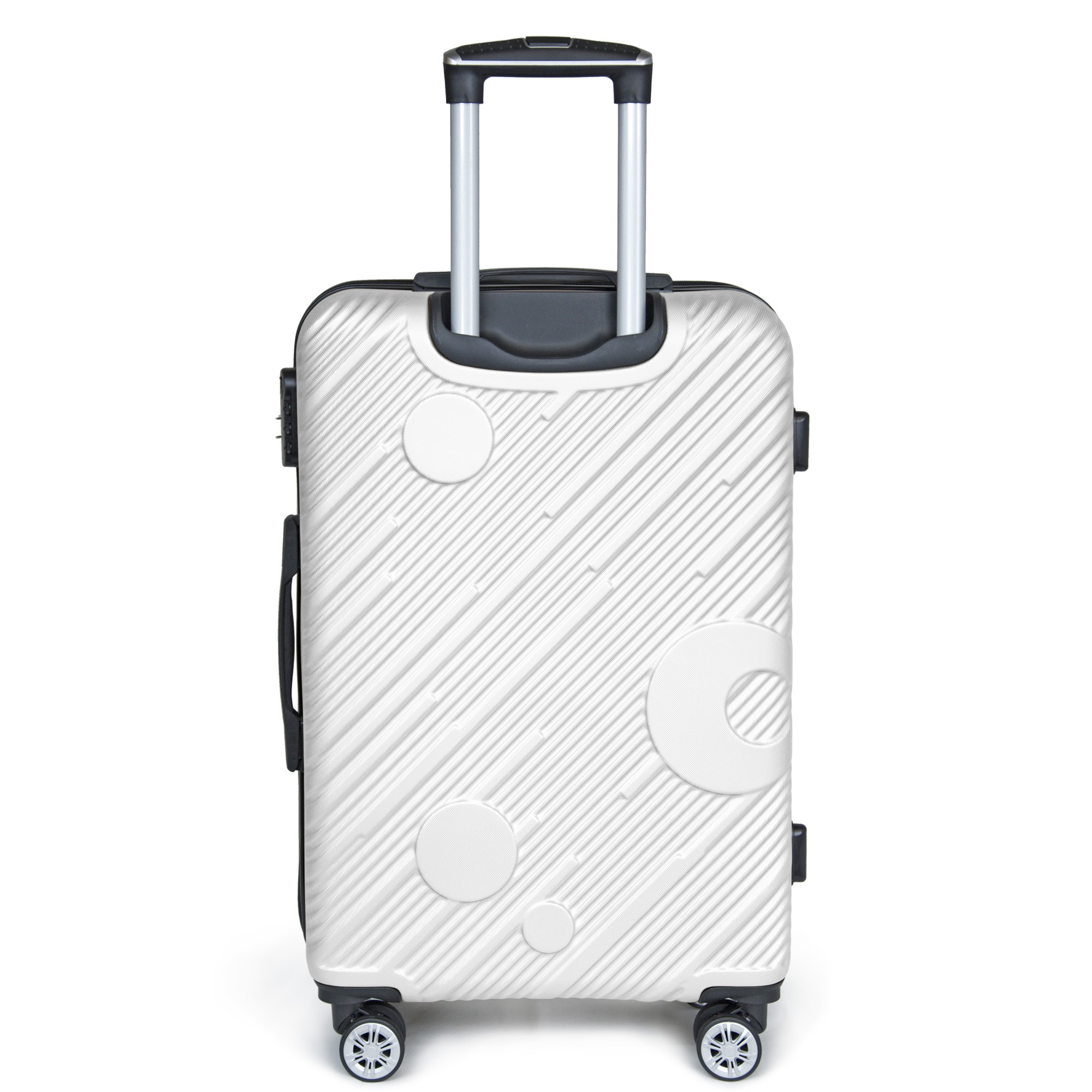 Caractéristiques : 4 double roues multidirectionnelles, coque 3D, 2 poignées de portage, pieds latéraux, canne trolley, serrure à code.