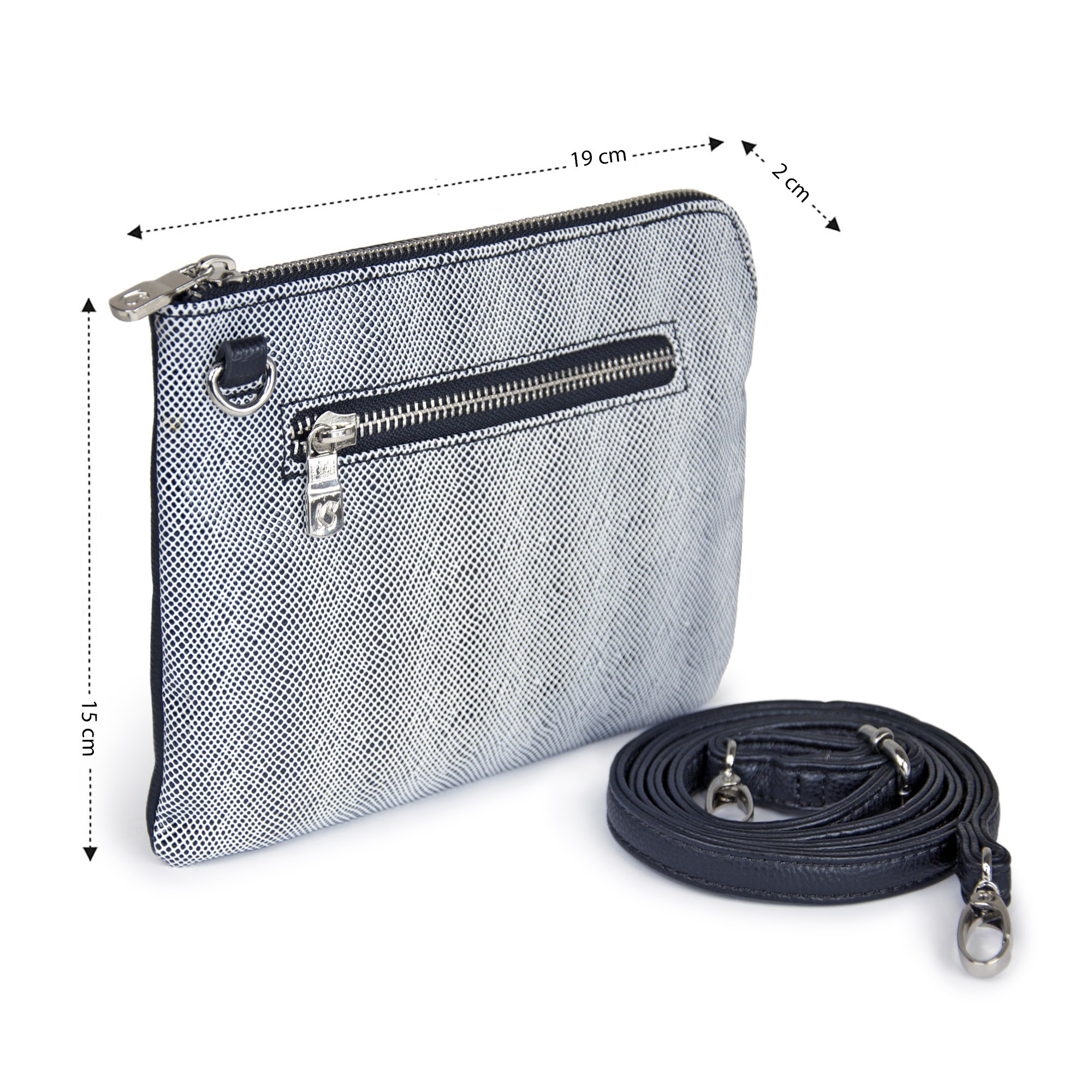 POCHETTE SYNTHETIQUE A BANDOULIERE REGLABLE NOIR ET BLANC