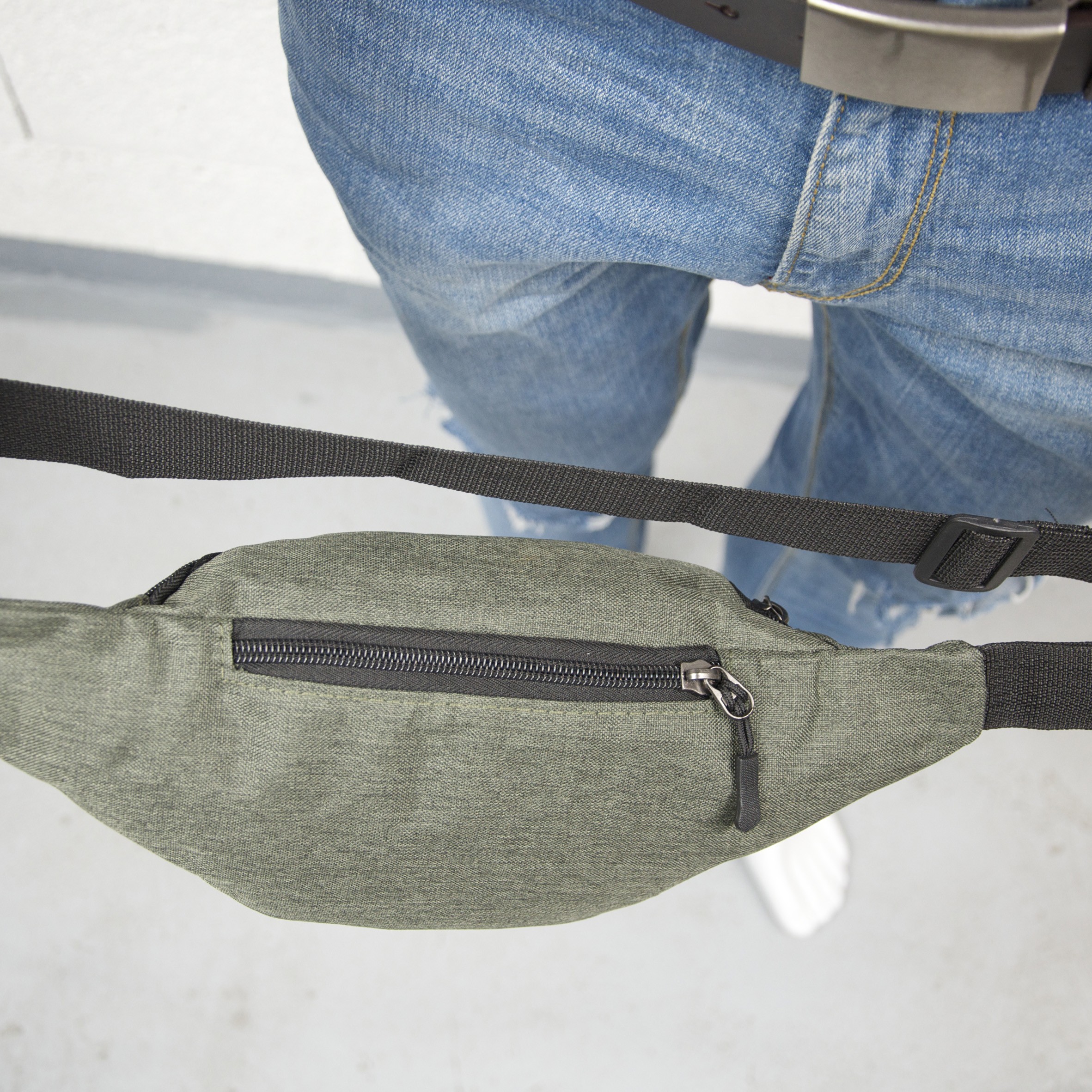 Sac banane textile, 2 poches. Le sac banane se porte à la taille comme de travers grâce à sa ceinture ajustable. Il est composé d'un grand compartiment principal et d’une discrète poche zippée au dos. Longueur de ceinture max : 95 cm avec boucle aviateur à ouverture rapide. Il est idéal pour avoir les mains libres lors de vos sorties. 100% Polyester.