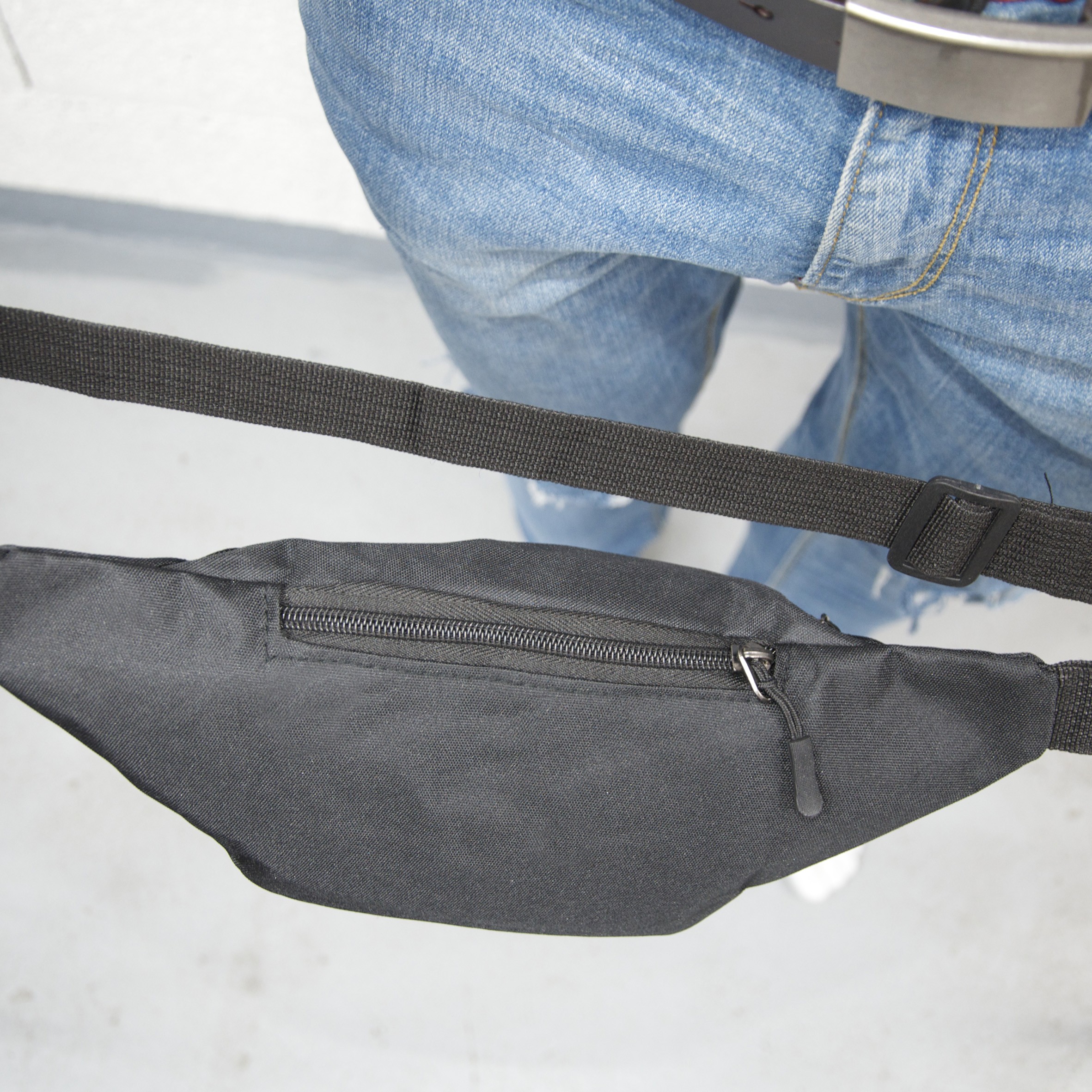 Sac banane textile, 2 poches. Le sac banane se porte à la taille comme de travers grâce à sa ceinture ajustable. Il est composé d'un grand compartiment principal et d’une discrète poche zippée au dos. Longueur de ceinture max : 95 cm avec boucle aviateur à ouverture rapide. Il est idéal pour avoir les mains libres lors de vos sorties. 100% Polyester.
