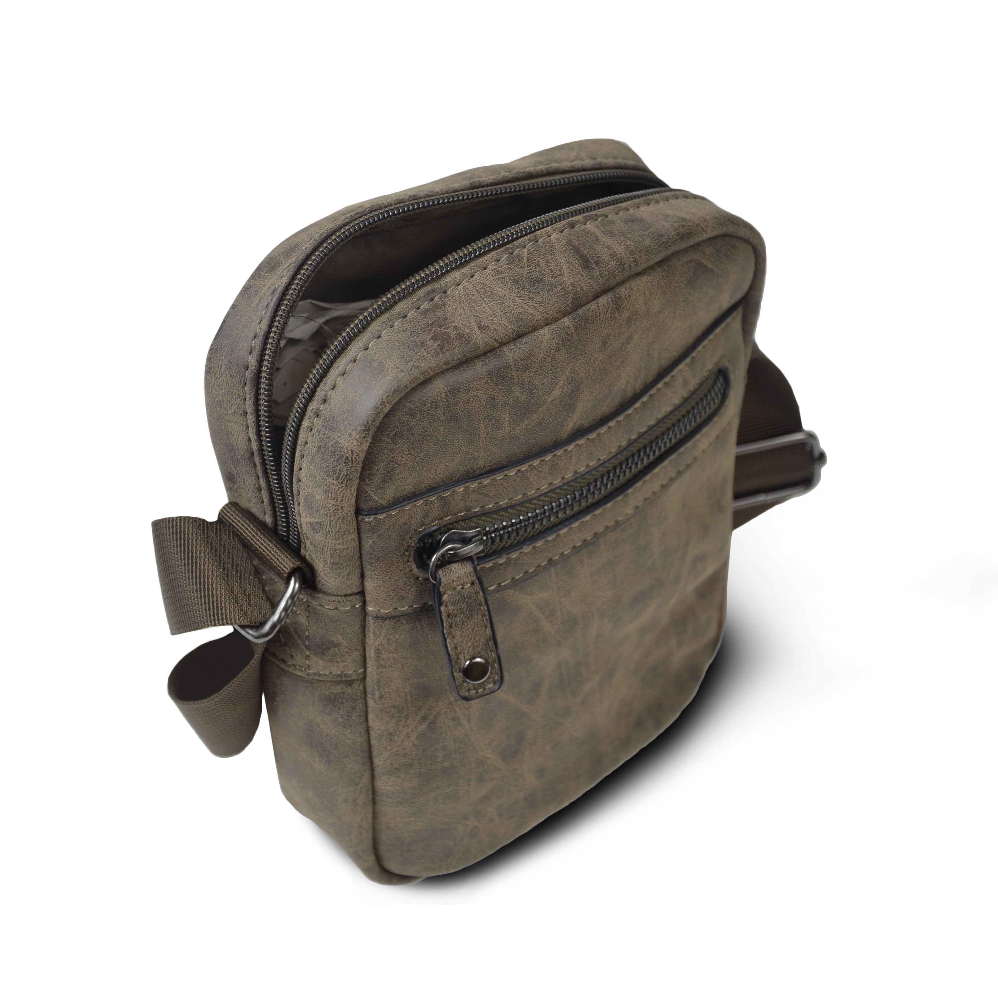 Sacoche Kinston en synthétique effet vieilli. Pratique et peu encombrante, elle peut contenir tous les indispensables du quotidien, un smartphone, une batterie mais aussi un portefeuille, des clés...
