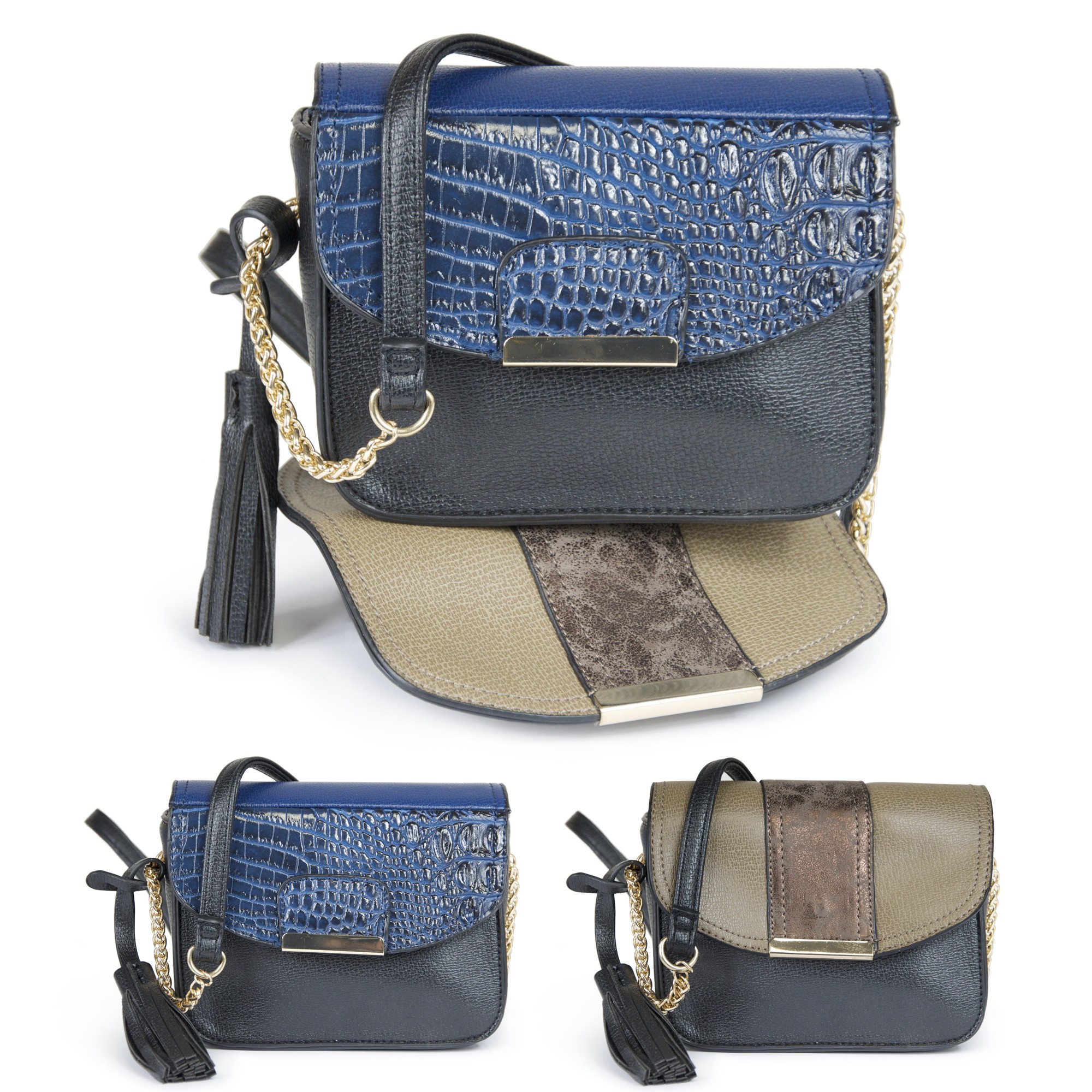 Le second, grainé bleu outremer avec empiècement façon croco bleu nuit pour l'indispensable touche d'élégance de vos soirées.