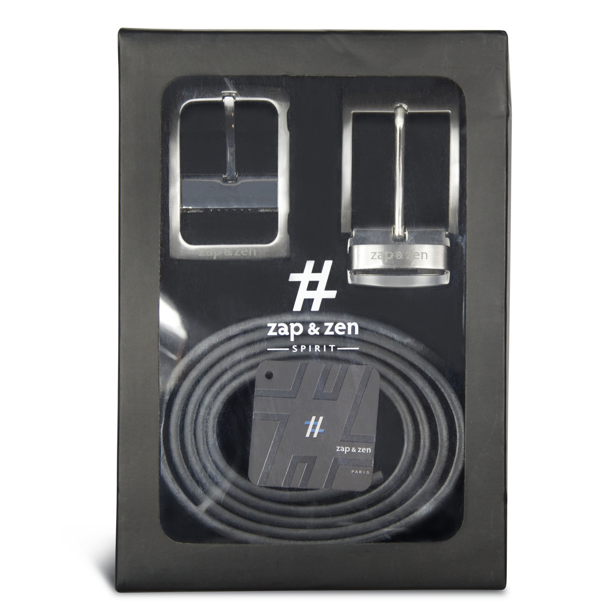 Coffret cadeau Homme: Ceinture Cuir réversible + 2 boucles métal
