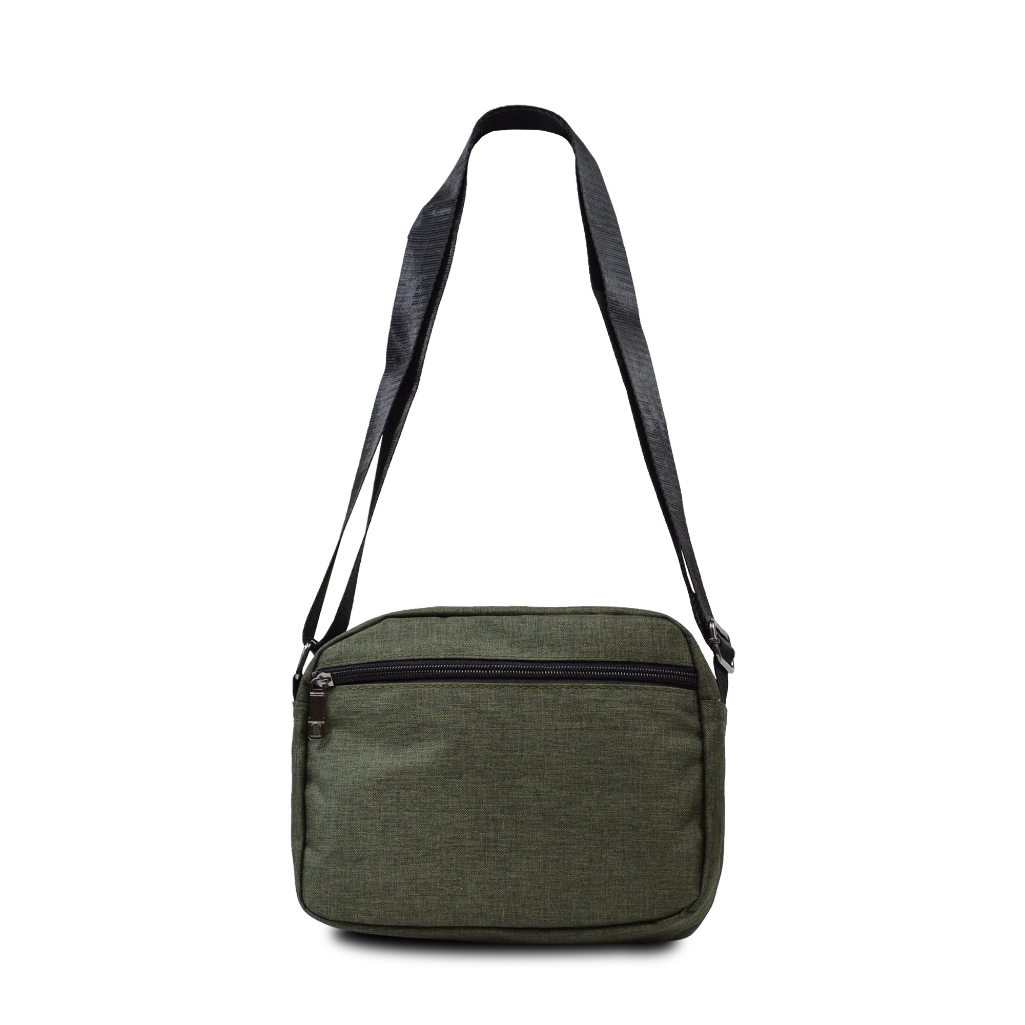 Sacoche à rabat à fermeture scratch avec une poche zippée extérieure sous le rabat, une poche zippée dorsale. La poche principale contient elle aussi une poche zippée et une poche zippée dorsale vient compléter les rangements.