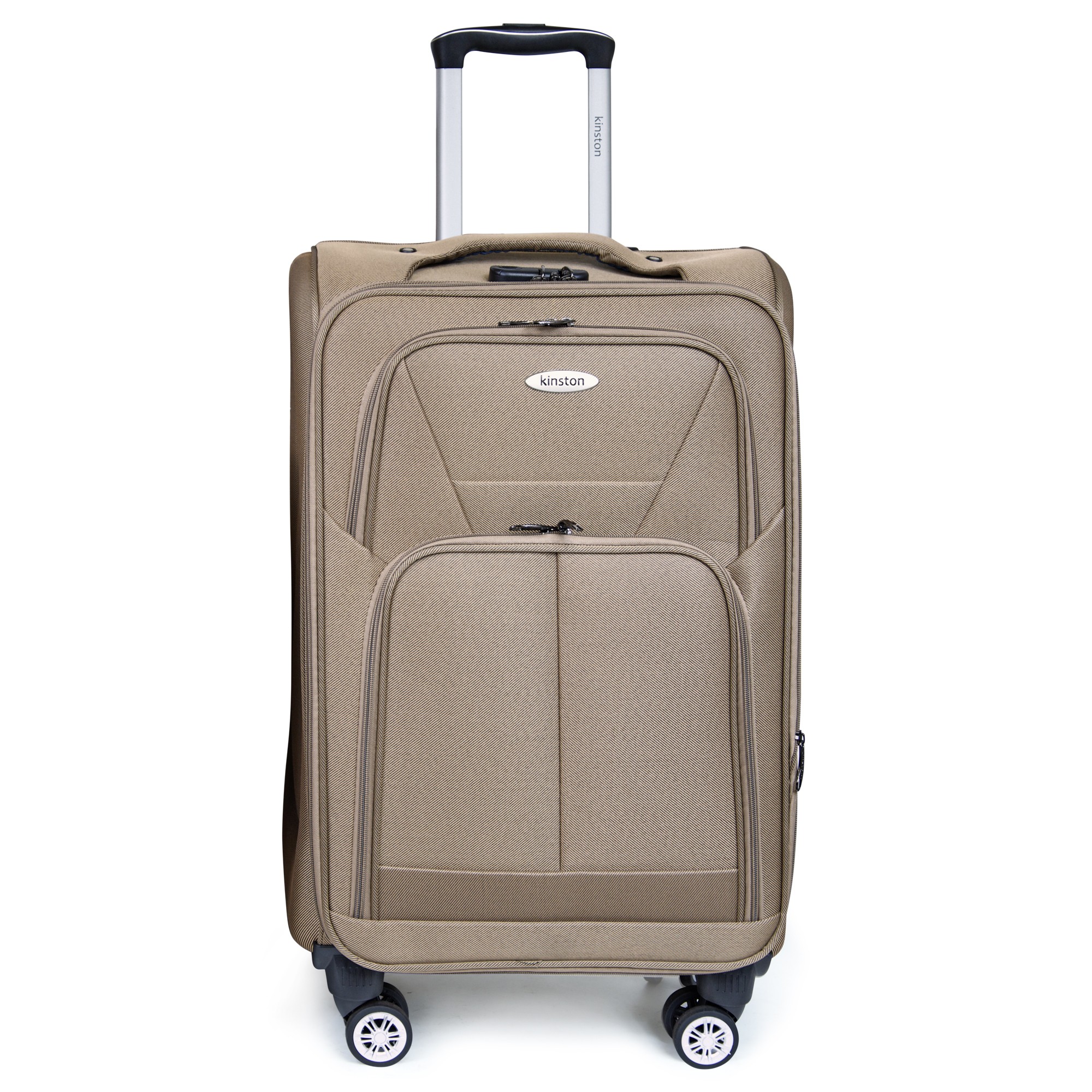 Ensemble de 3 valises textile à soufflets et côtés thermoformés.
