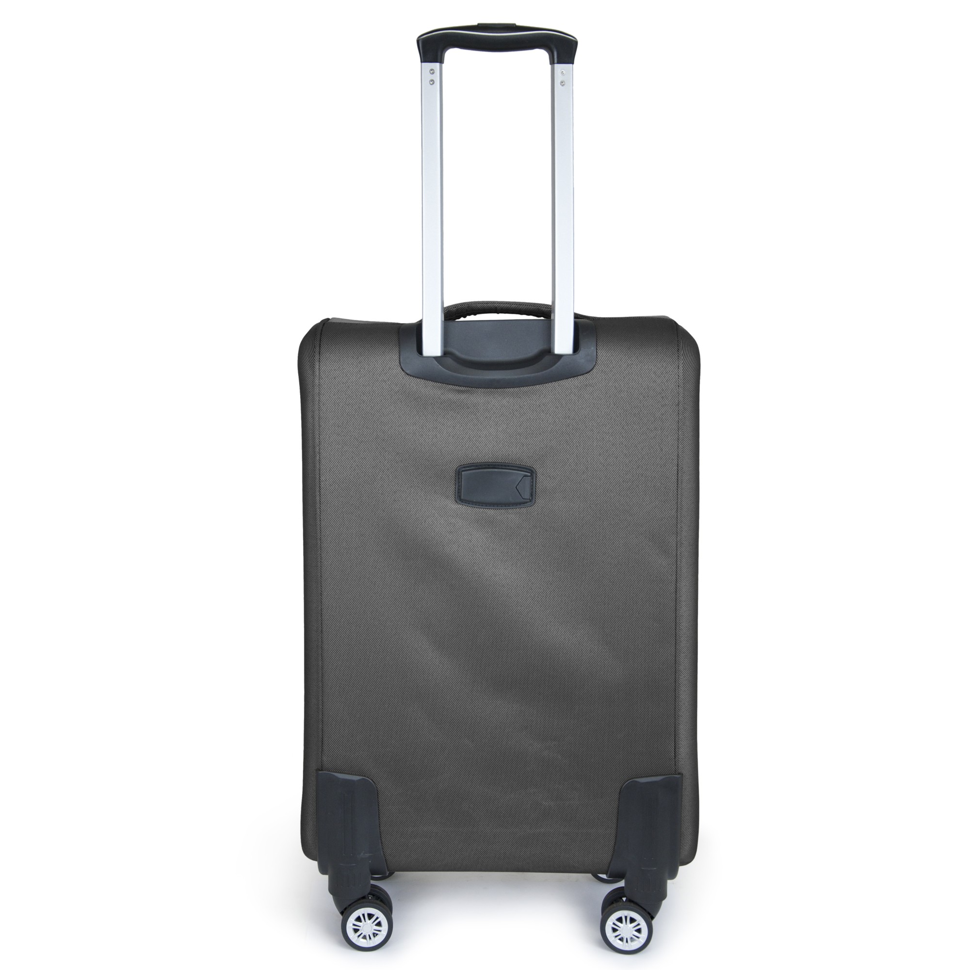 Ensemble de 3 valises textile à soufflets et côtés thermoformés.