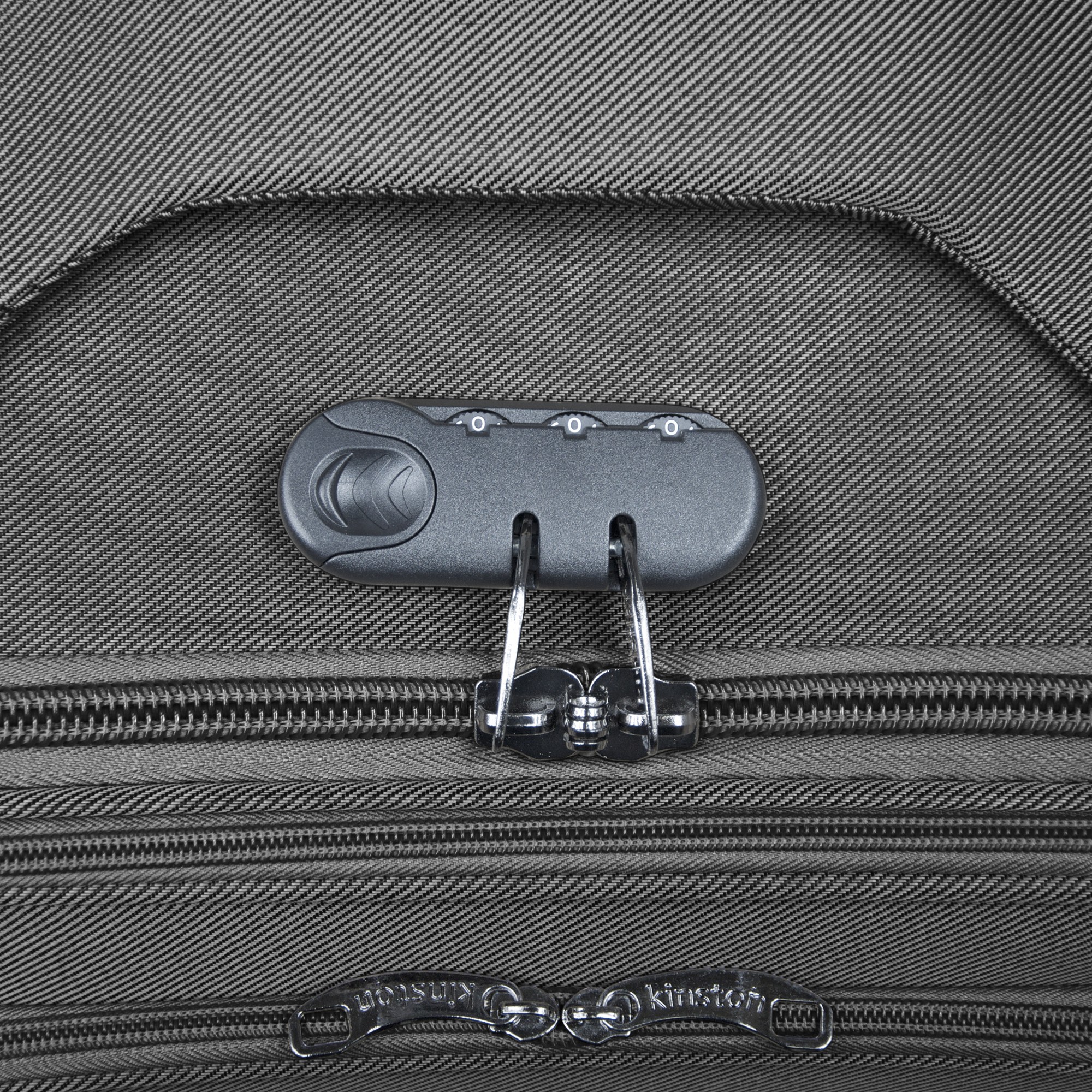 Elles sont sécurisées par des fermetures à glissière robustes et une serrure à code numérique. Un porte-adresse au dos permet de les identifier.