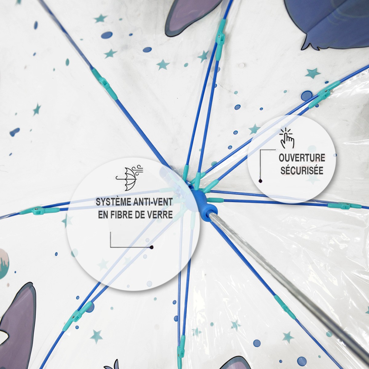 Pensé pour assurer une sécurité maximum aux enfants, les pointes des baleines sont protégées par un embout arrondi en plastique.