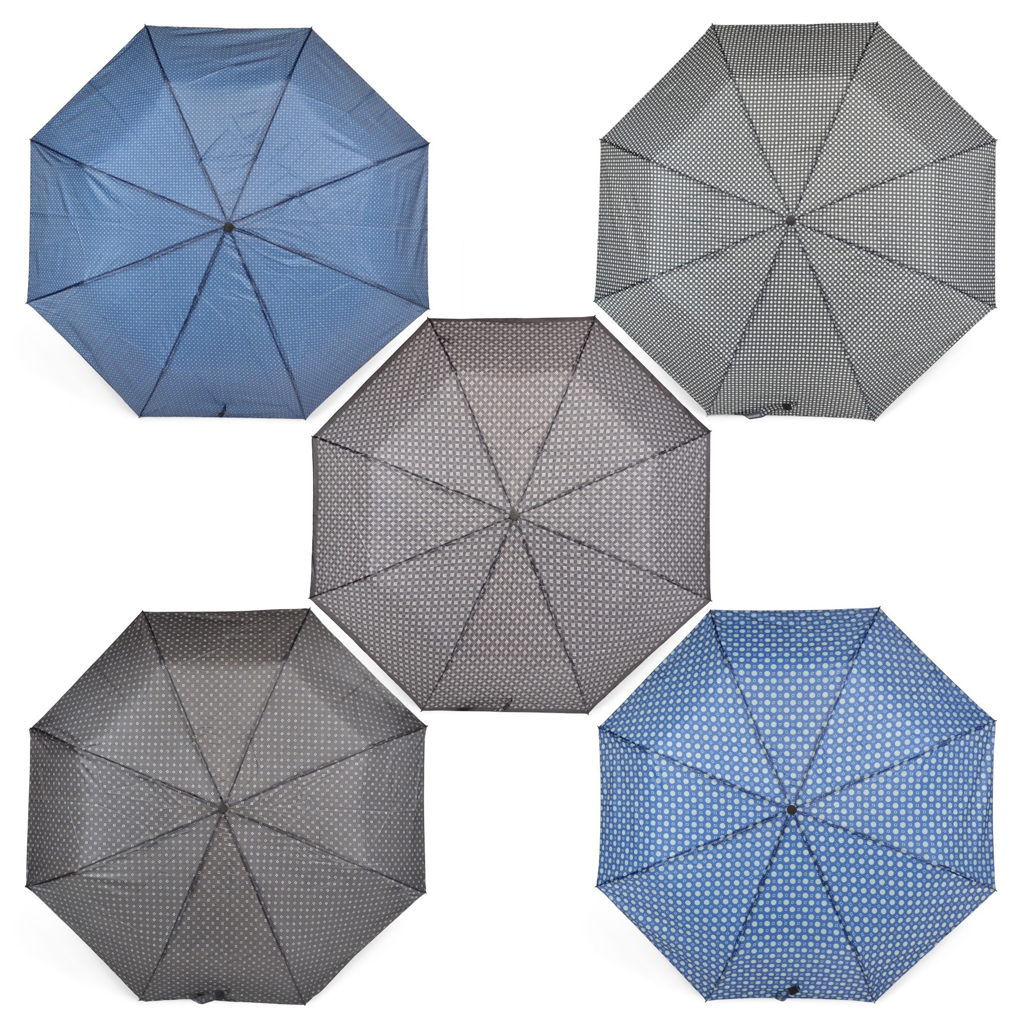 Avec ses 6 imprimés assortis, en polyester bleu marine, gris ou noir et blanc, pour un look masculin classique, il dispose de 8 baleines en métal. Il est livré avec son fourreau de protection logoté.