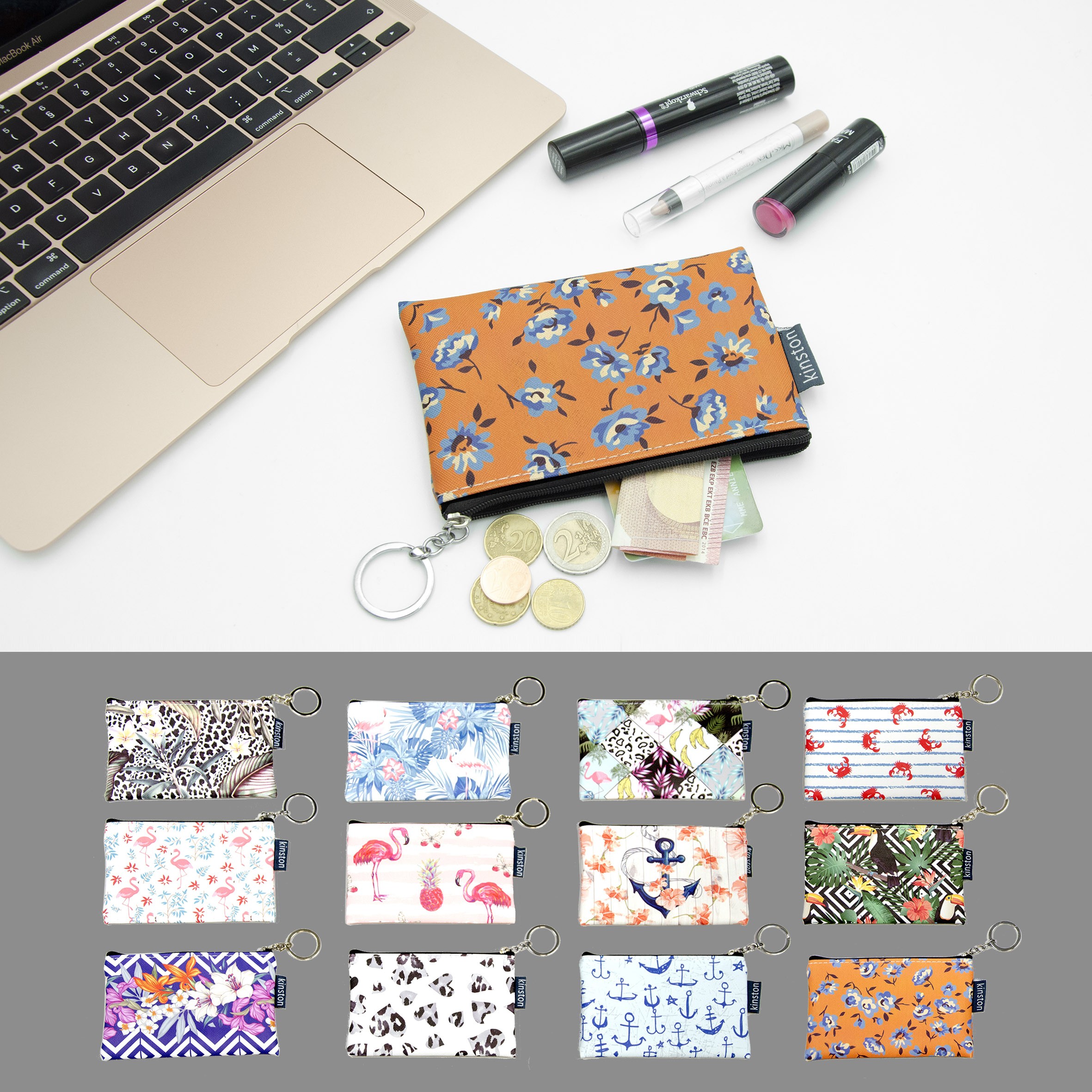 Assortiment de 12 imprimés , doublure textile noir, fermeture à glissière en nylon noir.