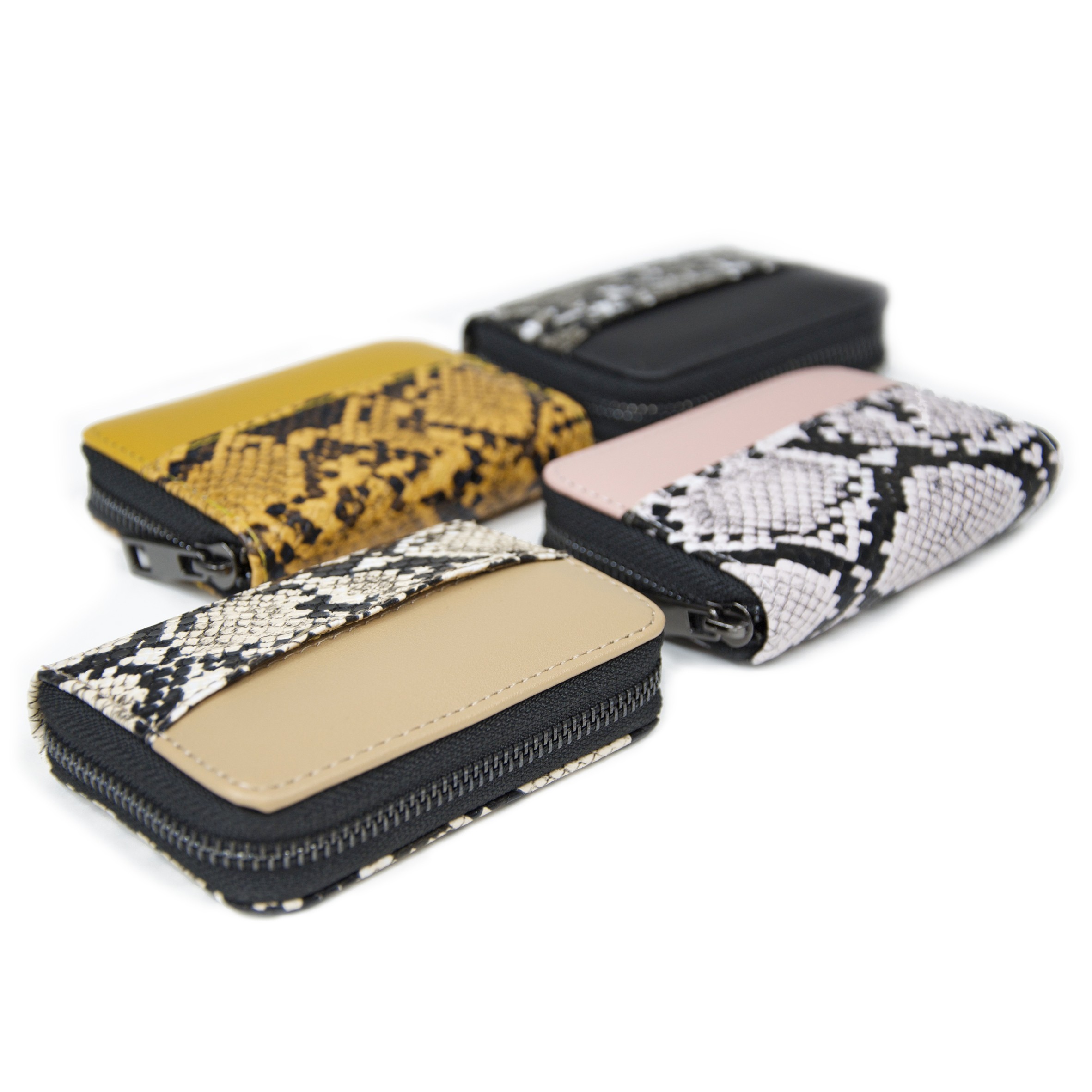 Petit portefeuille horizontal bi-matières avec empiècement reptile.