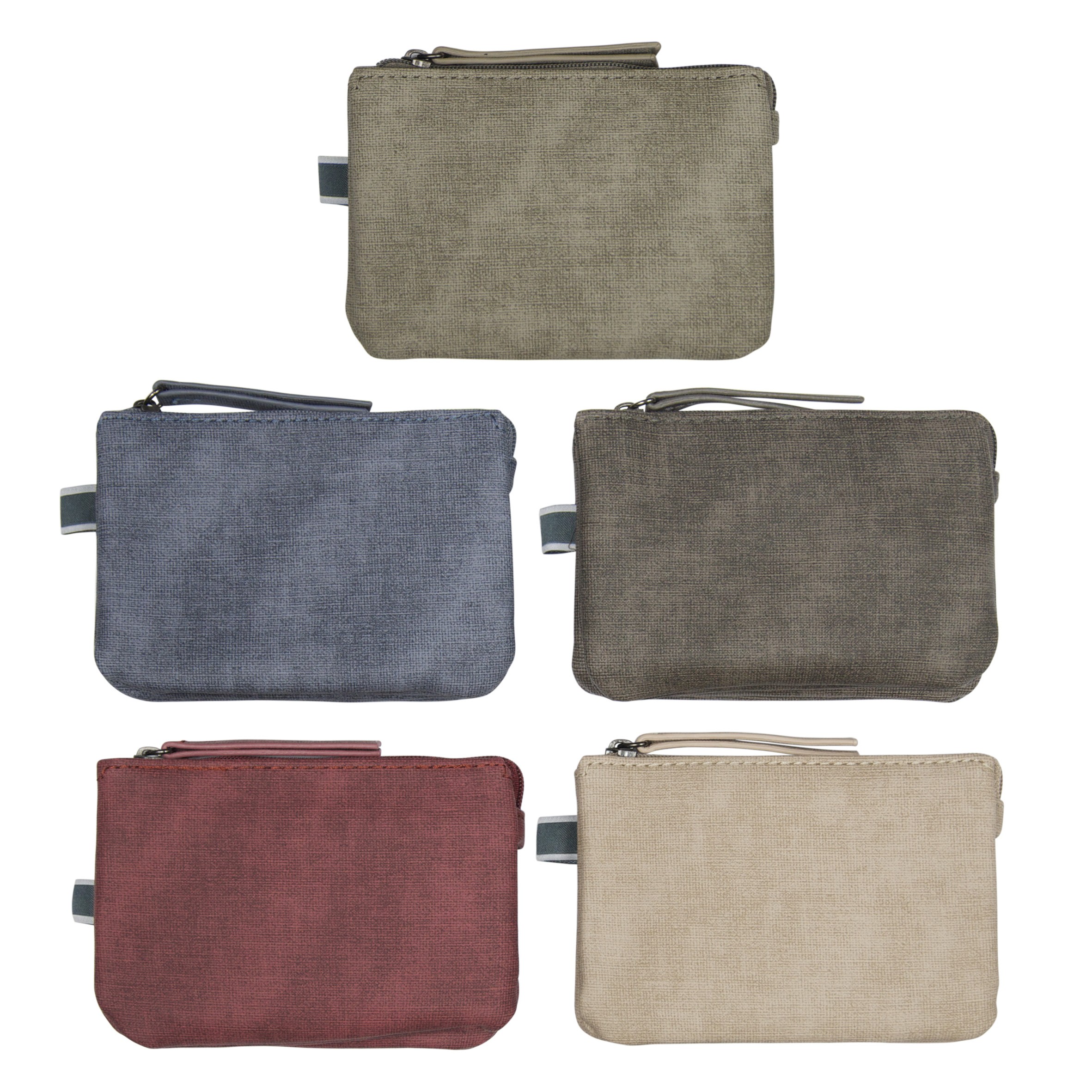 Porte-monnaie / porte cartes souple à soufflets, en synthétique façon toile vintage.