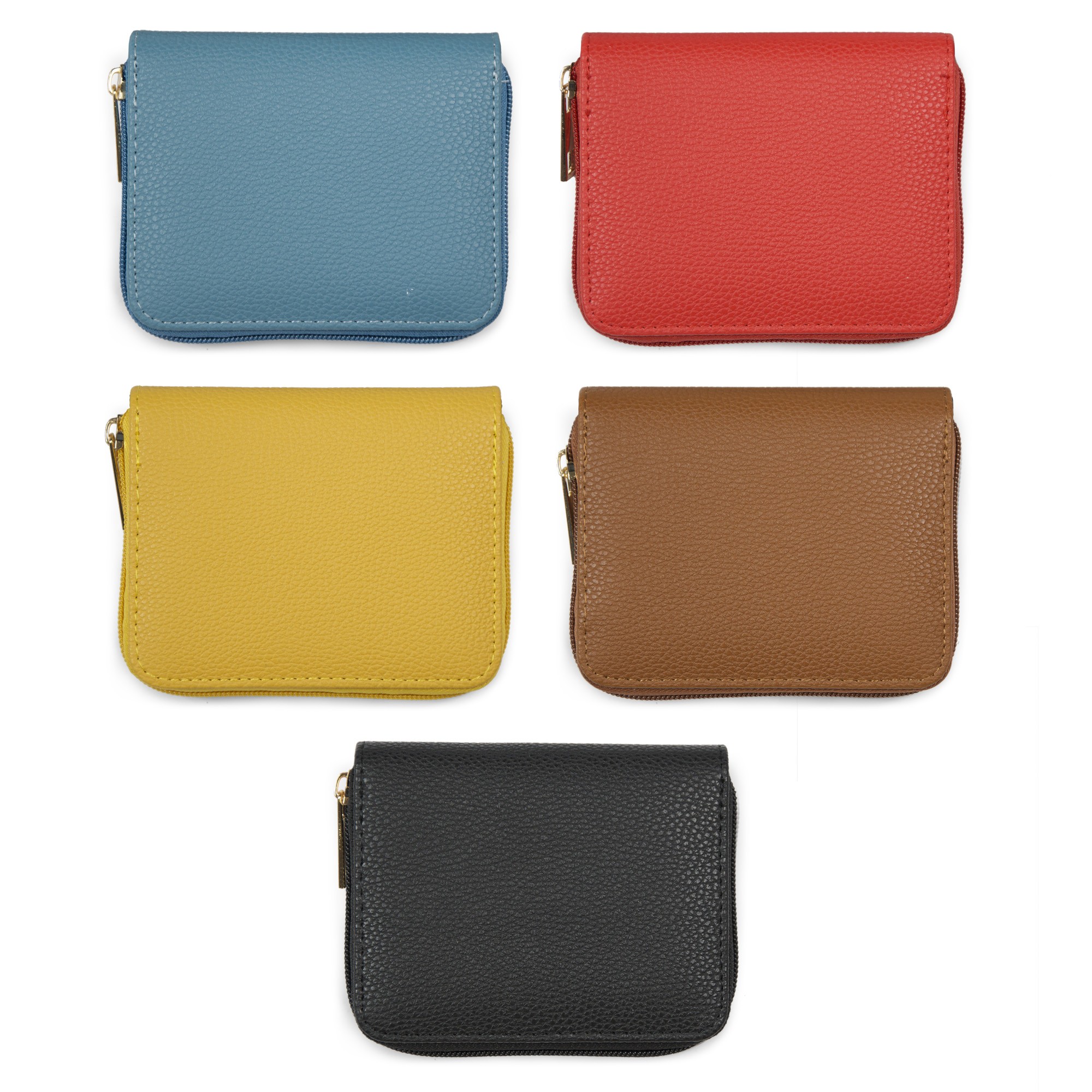 Fermeture à glissière sur 3 côtés. 2 soufflets intérieurs : deux grands emplacements, 1 poche porte-monnaie zippée et 6 emplacements CB.