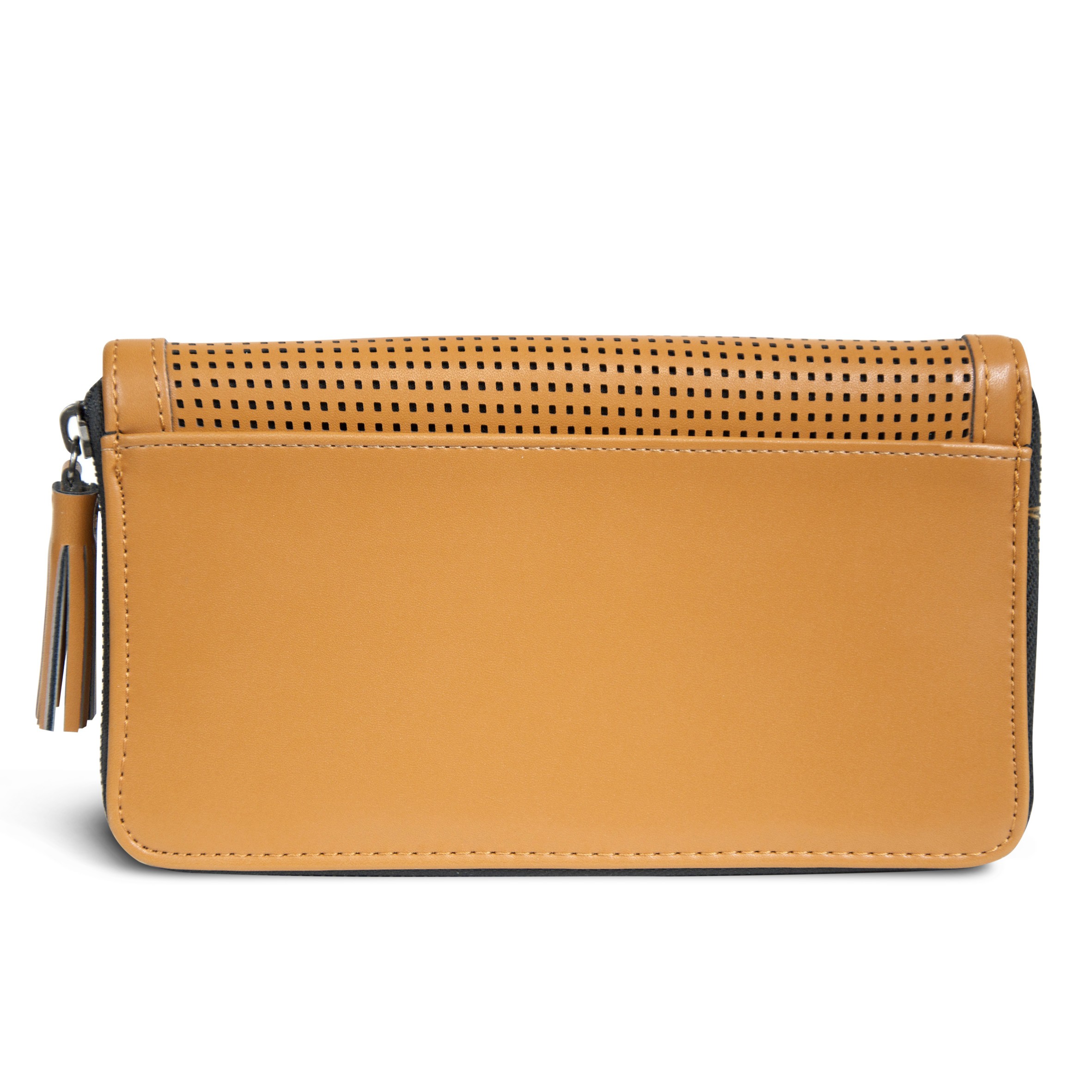 Le zipper contrasté noir avec un pompon frangé en guise de curseur, s’ouvre sur 2 volets séparés, dont 1 avec 2 larges compartiments à soufflets.