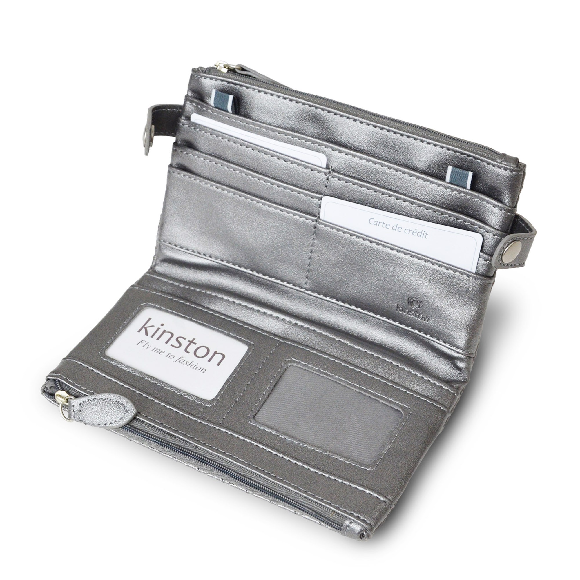 Fermeture par boutons pression latéraux, ouverture donnant sur l'intérieur du compagnon, contenant, 7 porte-cartes, 2 grandes poches plates et 2 petites ploches plates avec ouverture plastifiée transparente, 2 grandes poches zippées, qui peuvent être ouvertes, même le compagnon replié.