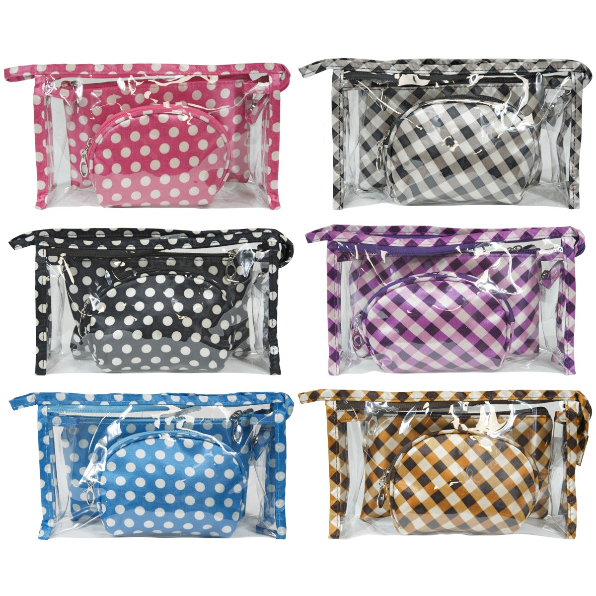 - La grande trousse de toilette en PVC transparent est dotée d’une petite anse qui facilite le transport du set. Elle est en PVC transparent, facile à nettoyer et imperméable pour une protection efficace des 2 autres trousses comme des accessoires qu’elle contiendra.