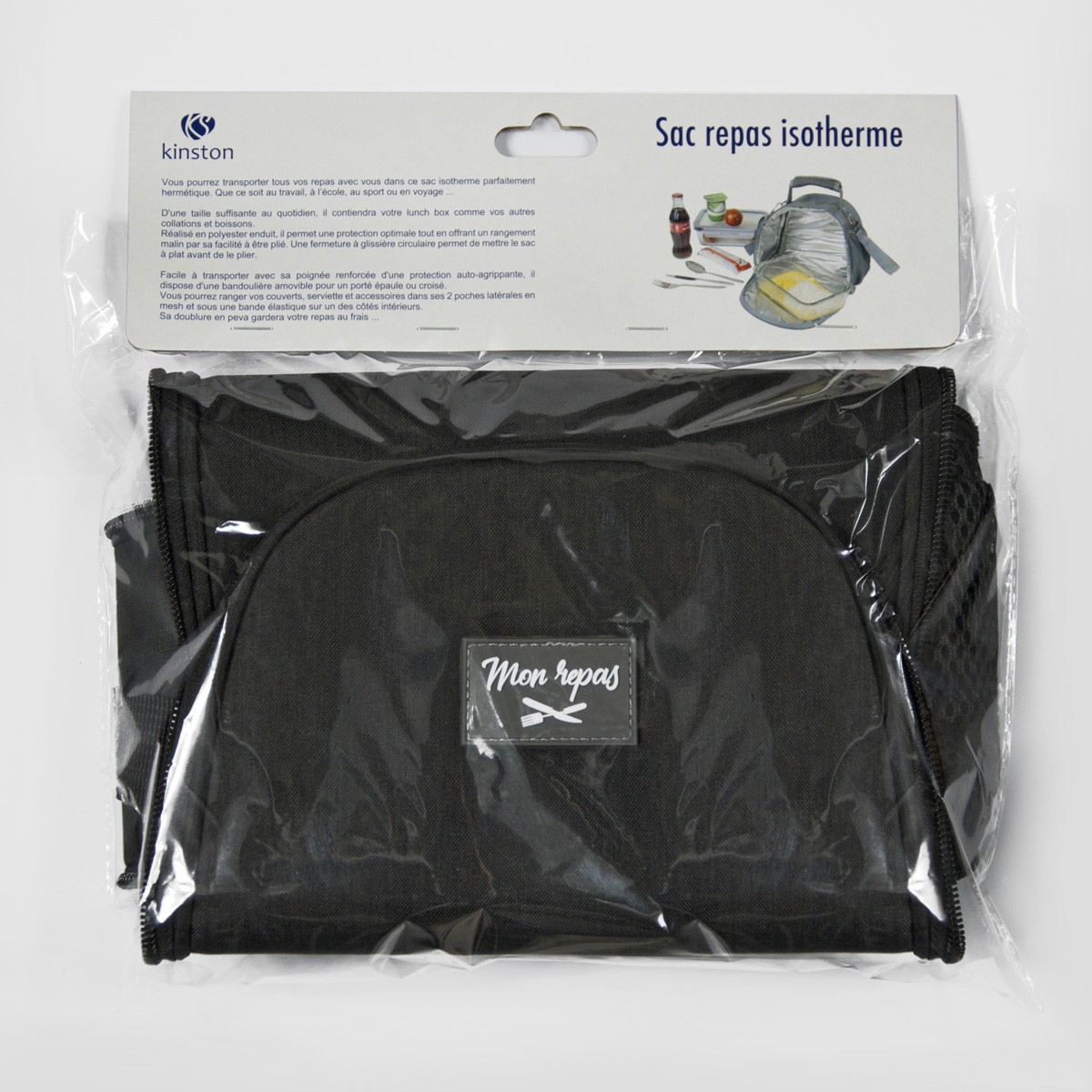 Sac à repas en polyester renforcé pour transport de denrées chaudes ou froides. La doublure en aluminium permet de conserver la température des aliments. Les sangles en textile permettent un porté stable.